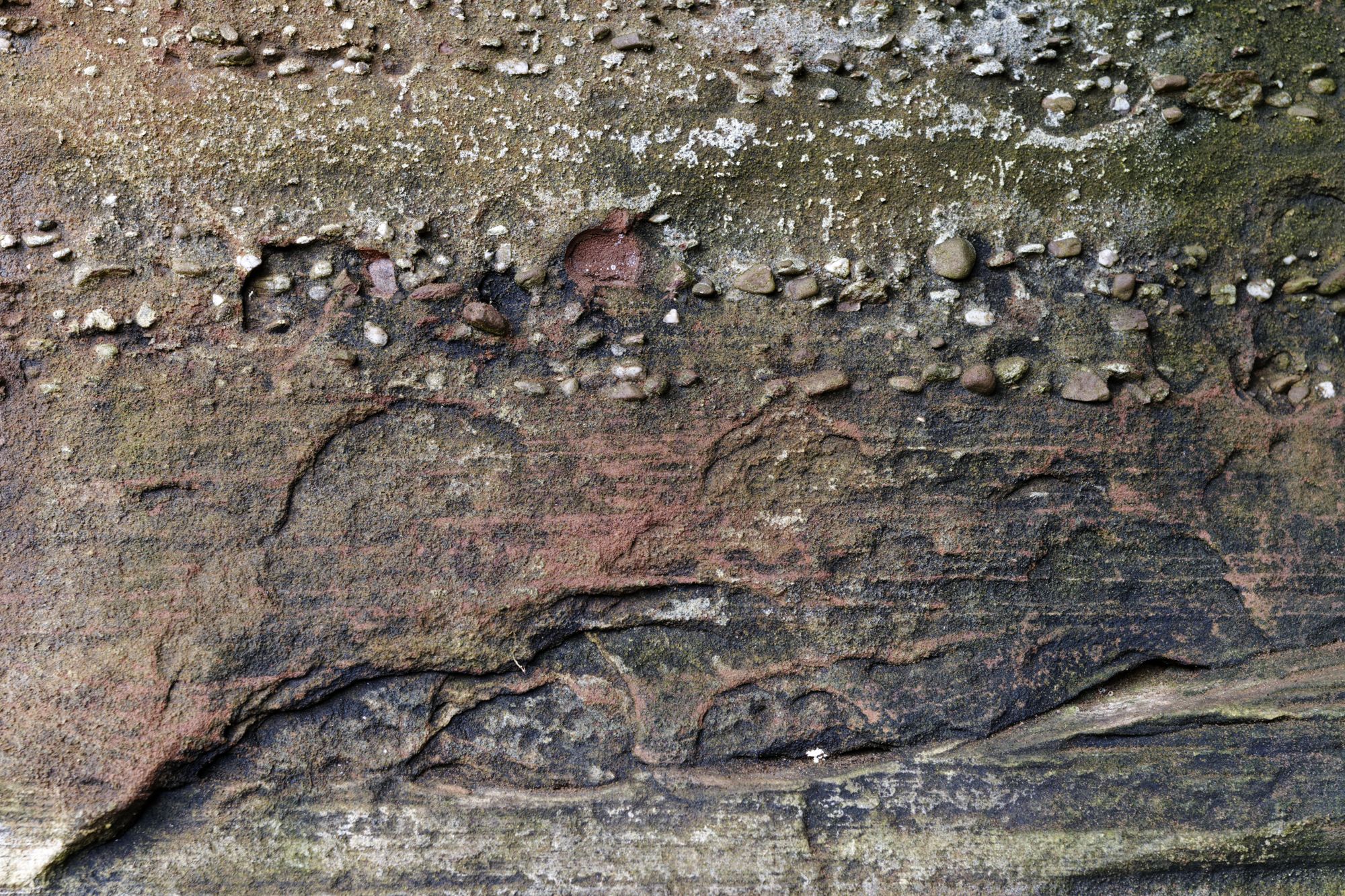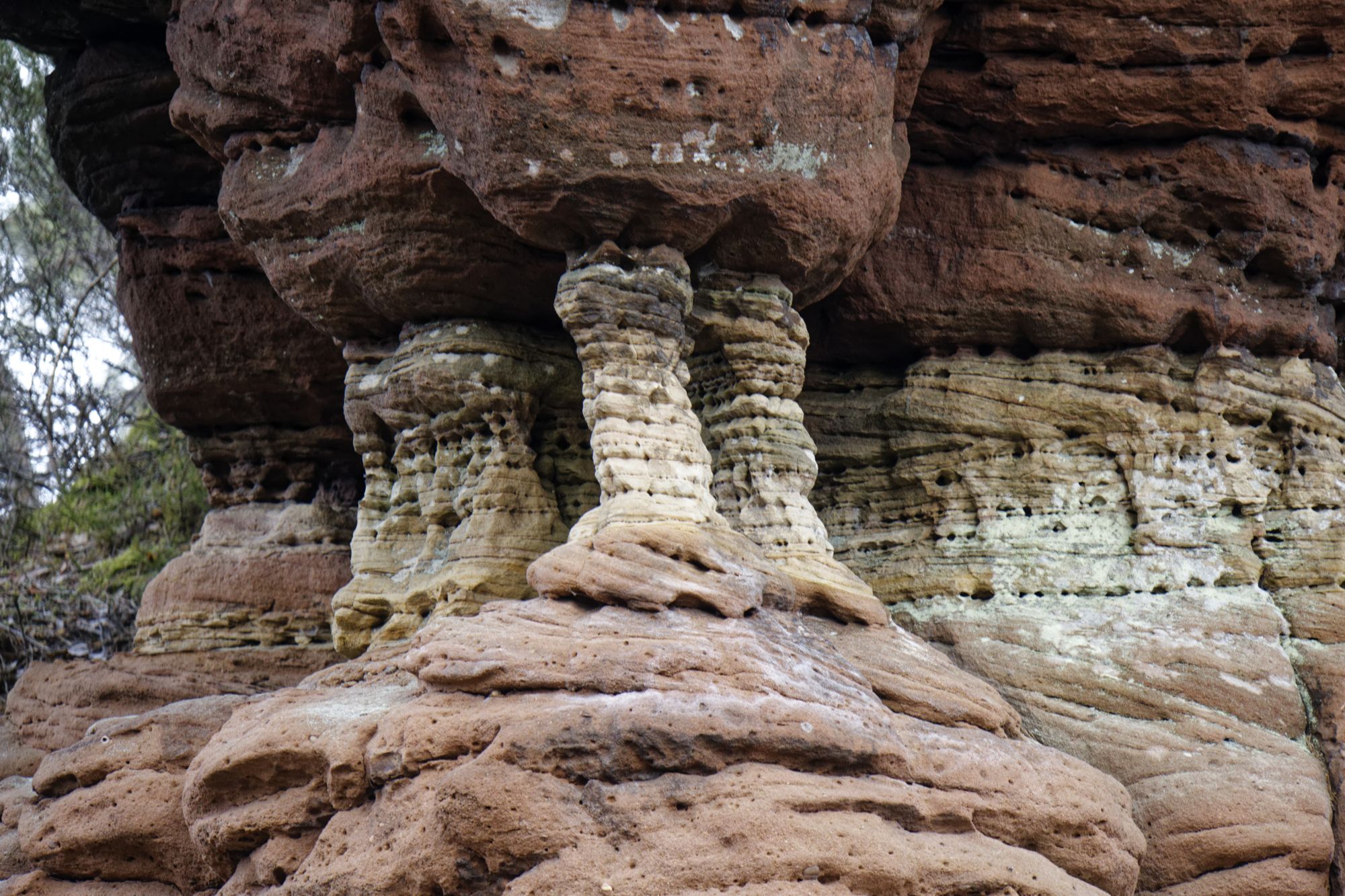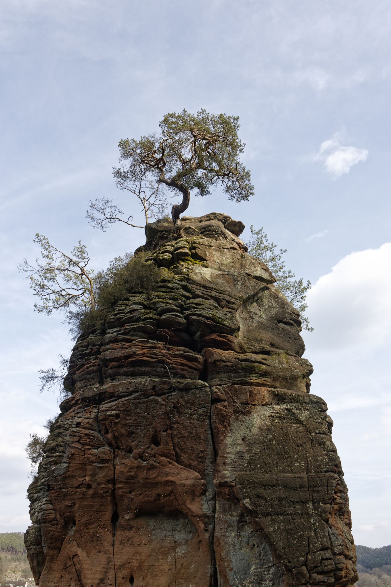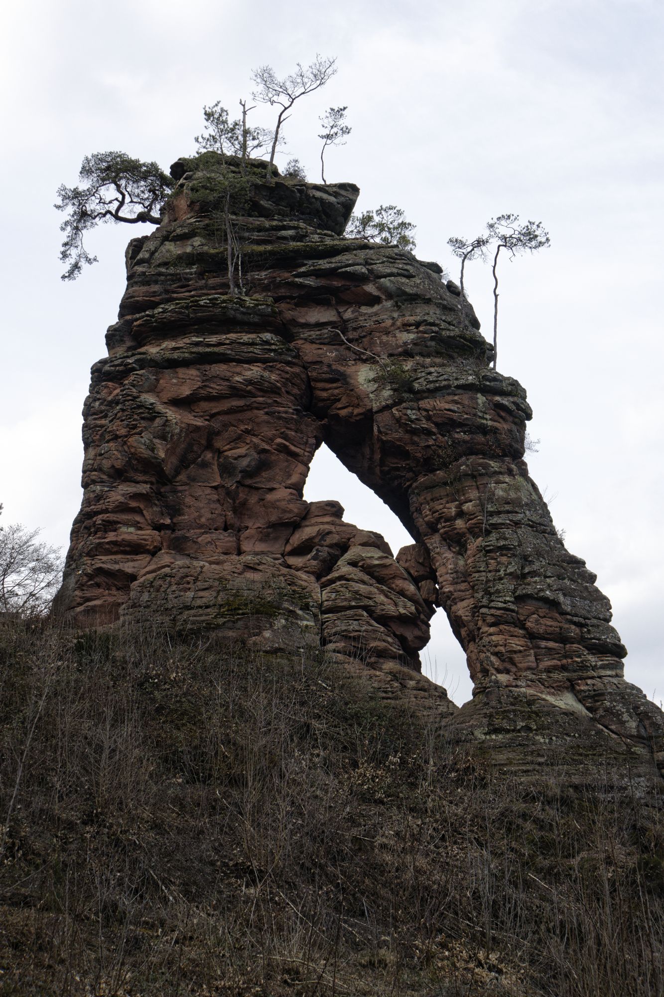 Der rosa-orangene Sandstein ist typisch für die Pfalz. An einigen Stellen treten sie als Skulpturen auf! Obere und untere Bärenhöhle in Rodalben: Pano