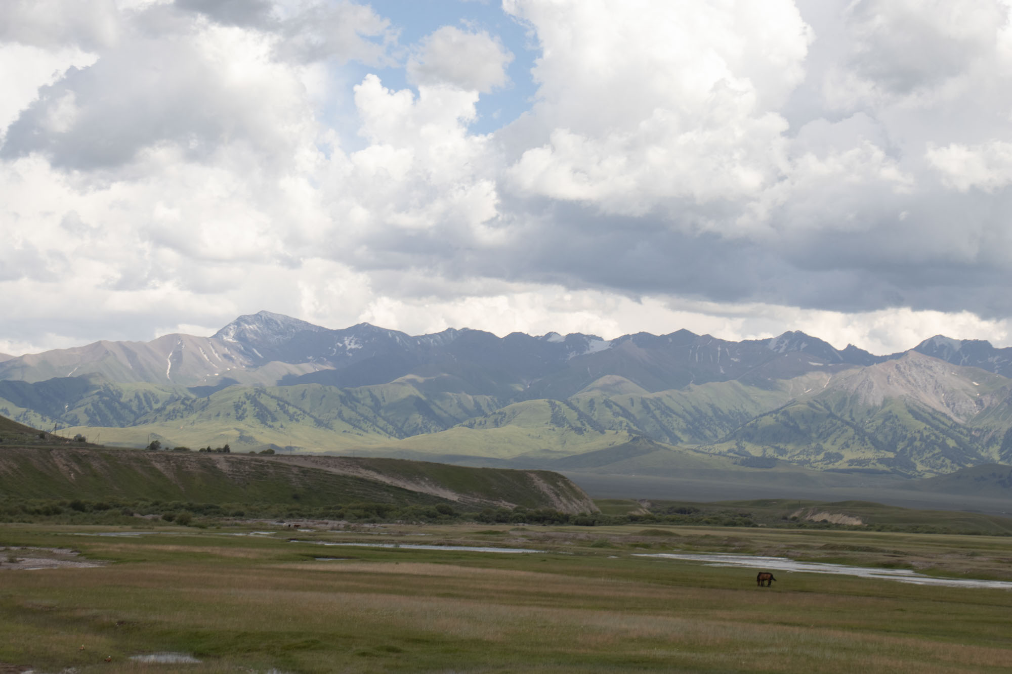 Mit einem Taxi bis zur kasachisch-kirgisischen Grenze... und weiter mit einem sehr netten Trucker über die Piste nach Karakol.