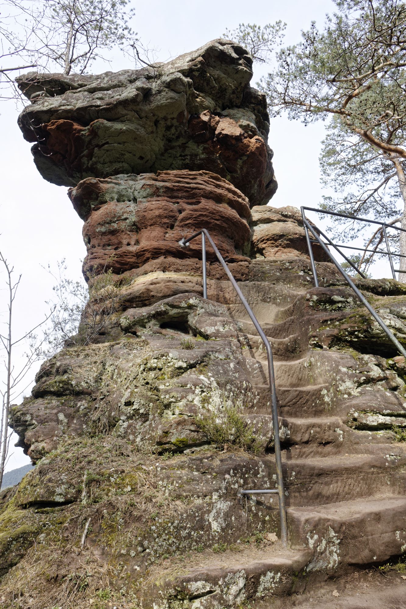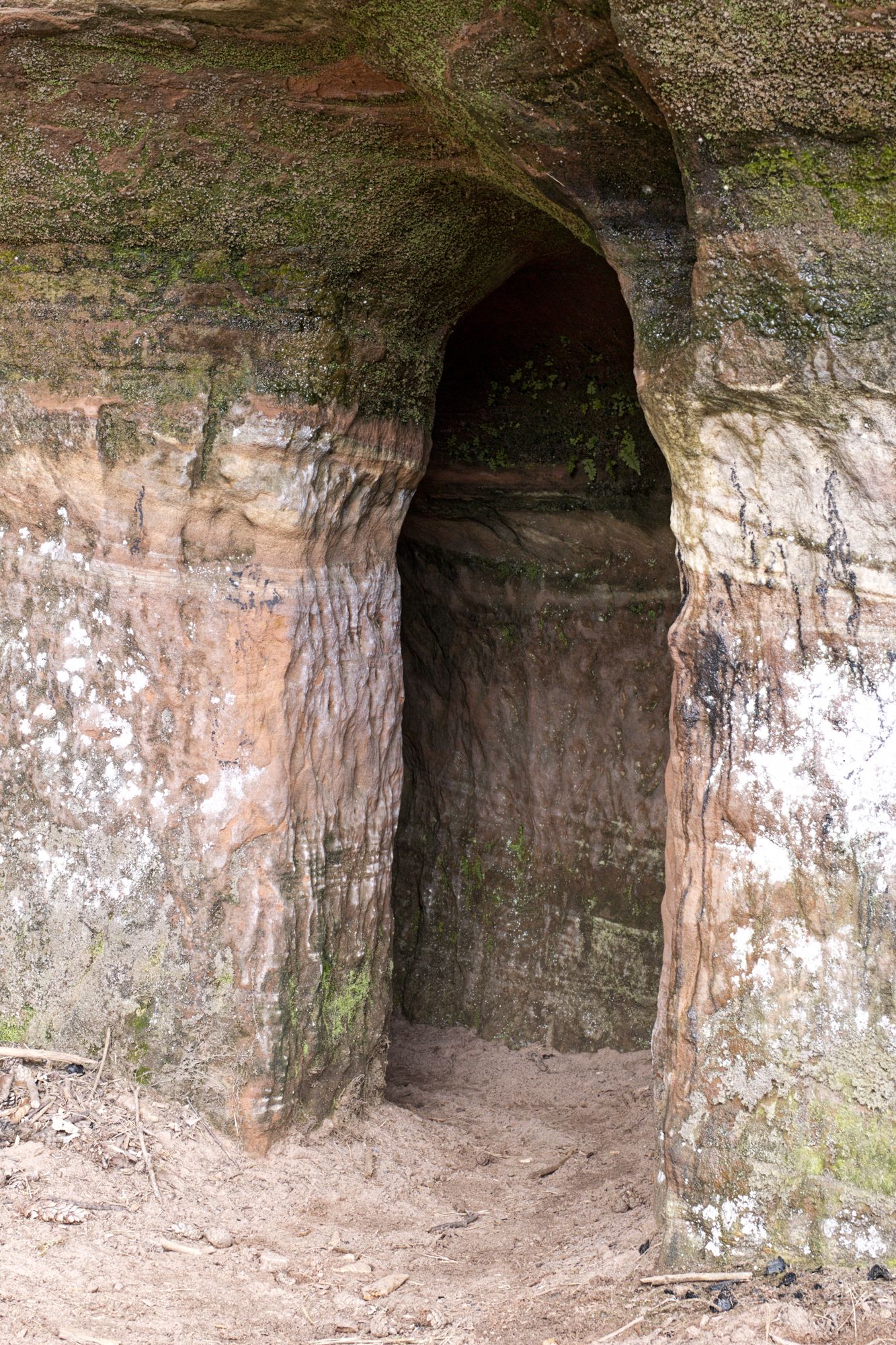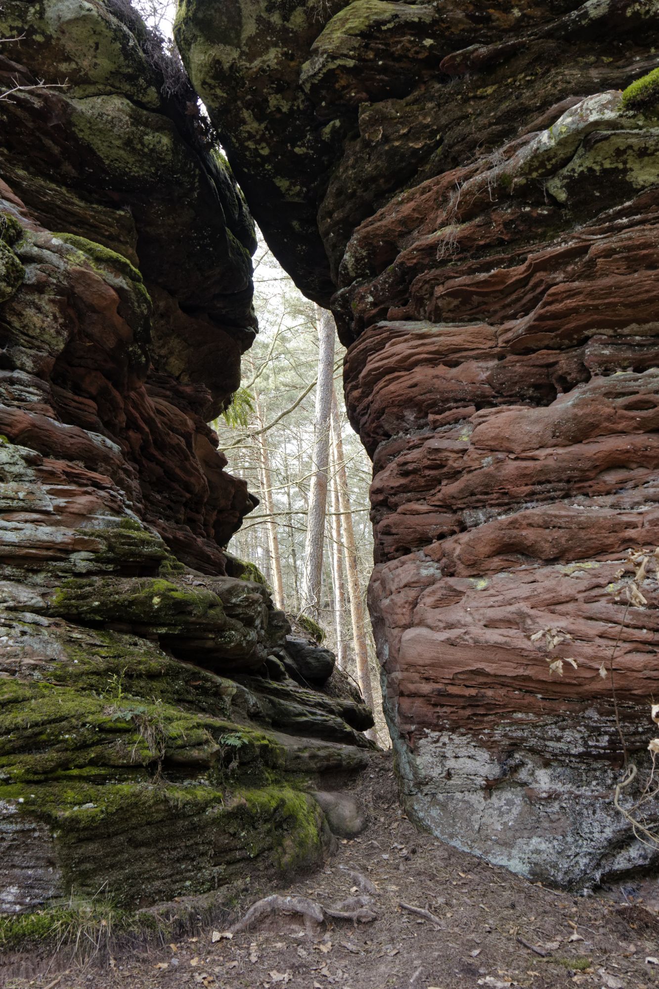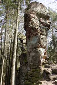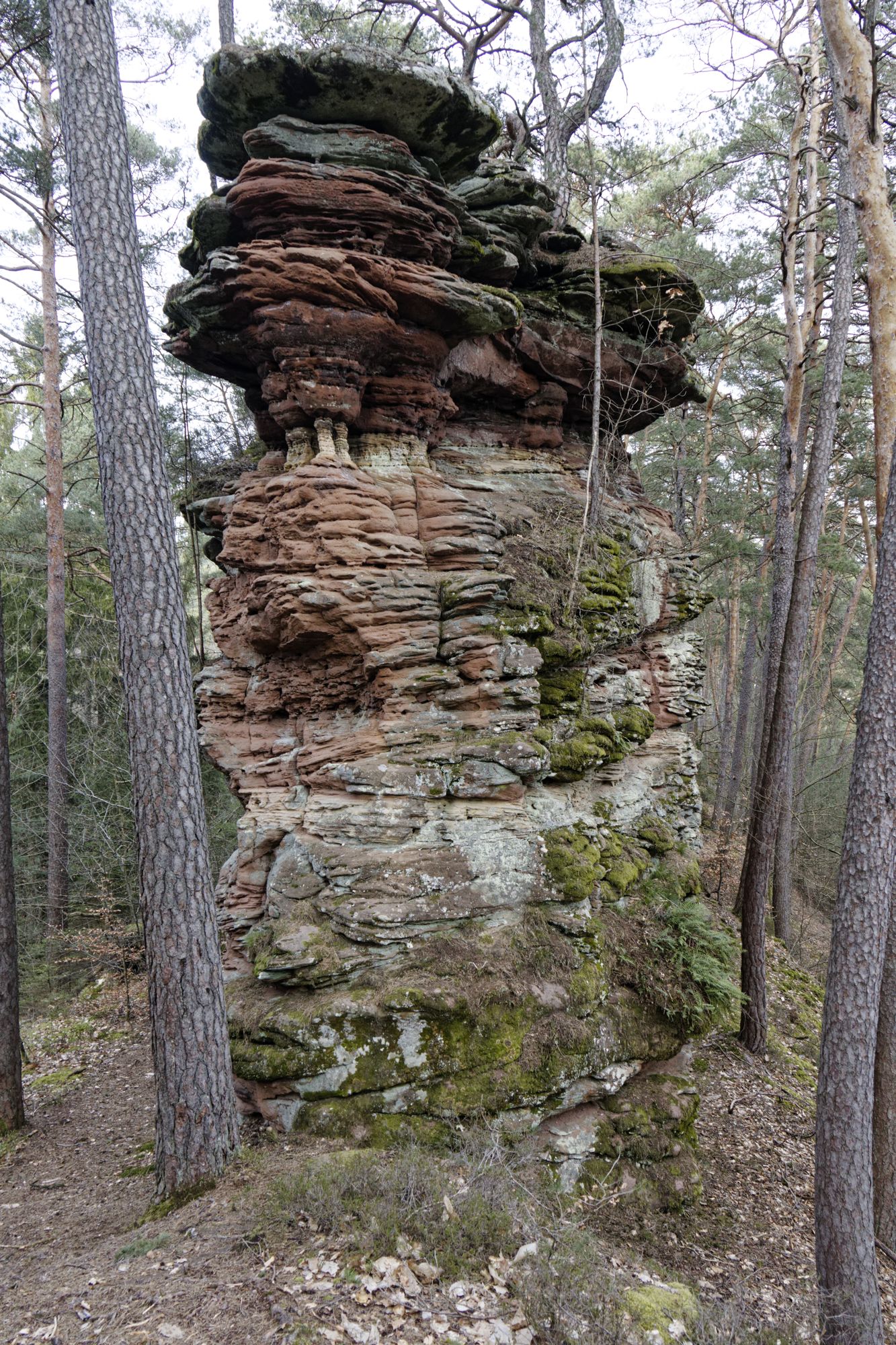 Der rosa-orangene Sandstein ist typisch für die Pfalz. An einigen Stellen treten sie als Skulpturen auf! Obere und untere Bärenhöhle in Rodalben: Pano