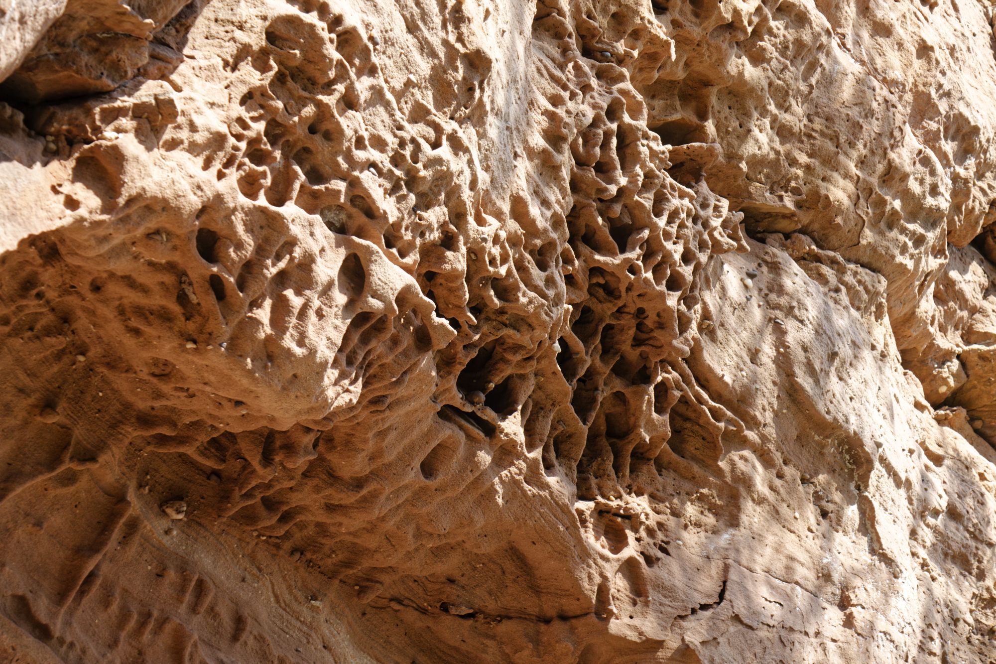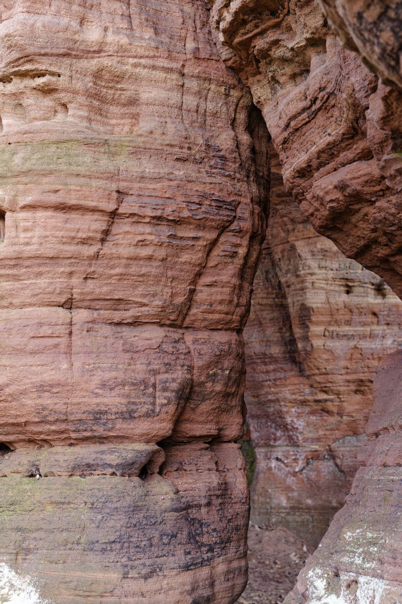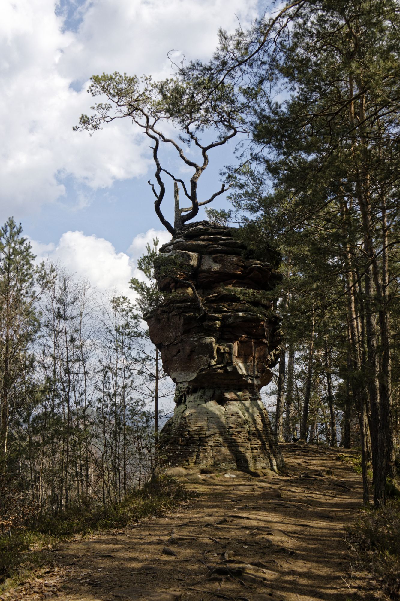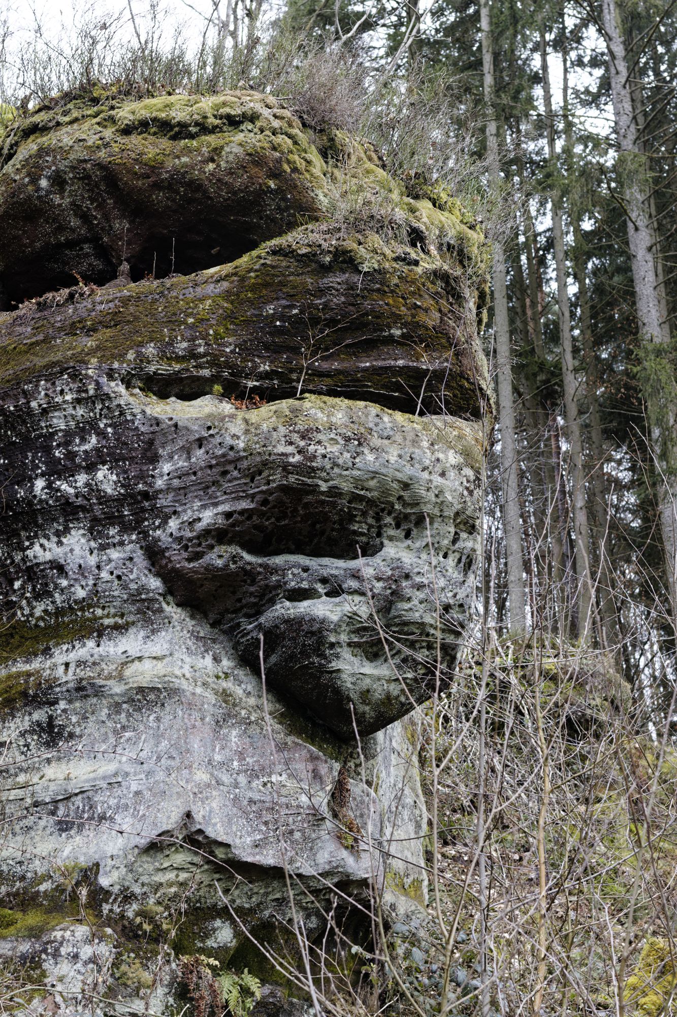 Der rosa-orangene Sandstein ist typisch für die Pfalz. An einigen Stellen treten sie als Skulpturen auf! Obere und untere Bärenhöhle in Rodalben: Pano
